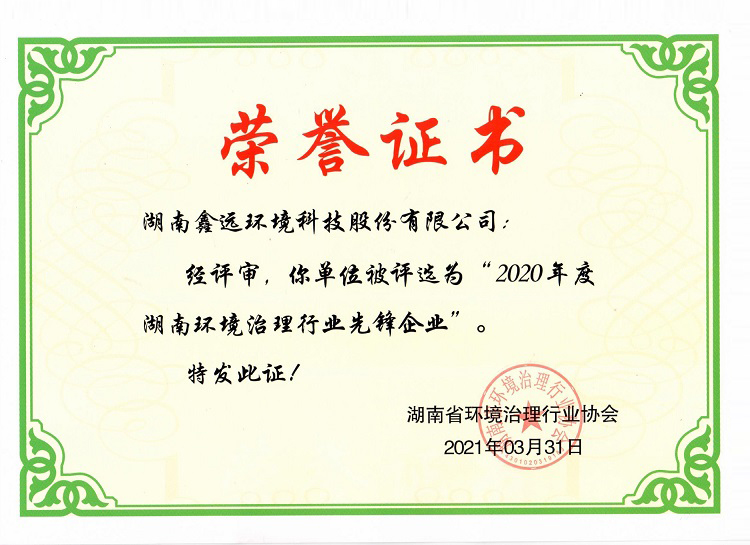 致力科技创新、努力治理发展,在湖南省环境治理行业协会举办的评选活动中,必赢bwin线路检测中心获评“2020年度湖南环境治理行业先锋企业”荣誉称号。