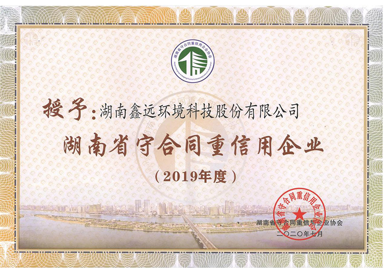 湖南必赢bwin线路检测中心环境科技股份有限公司荣获2019年湖南省守合同重信用公示企业